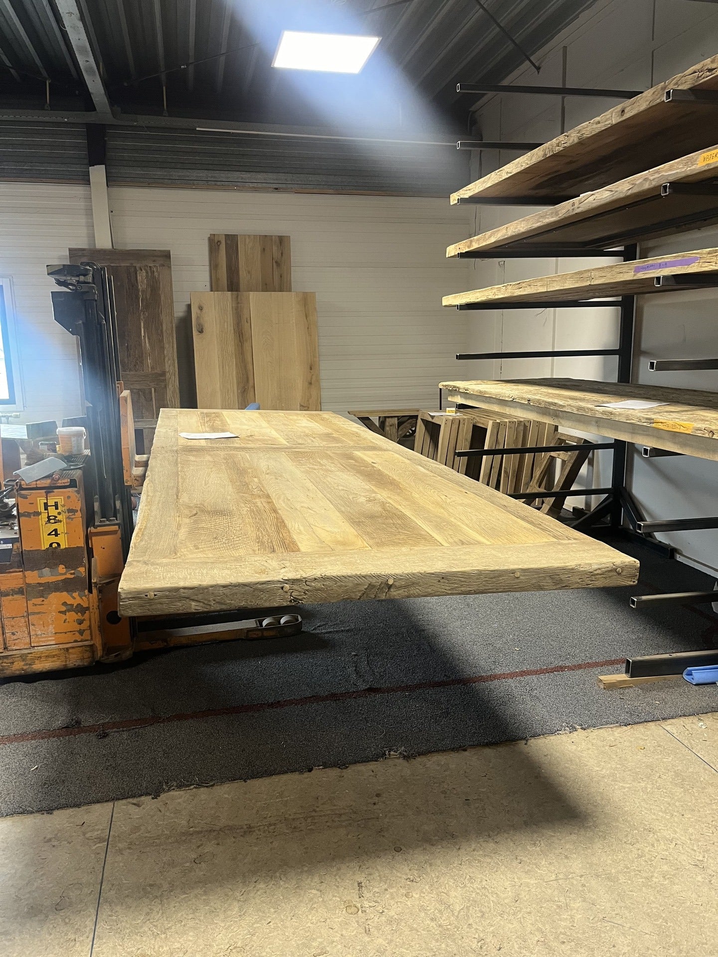 Nous travaillons exclusivement avec du chêne ancien massif, récupéré sur des bâtiments agricoles ou historiques, en France et en Europe.