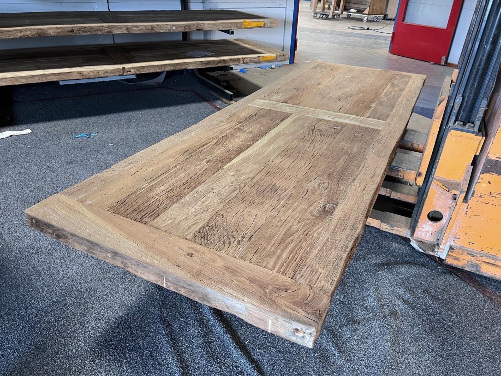 - Épaisseur : 5 cm en chêne massif ancien, issu de charpentes d'anciennes demeures et bâtiments agricoles.