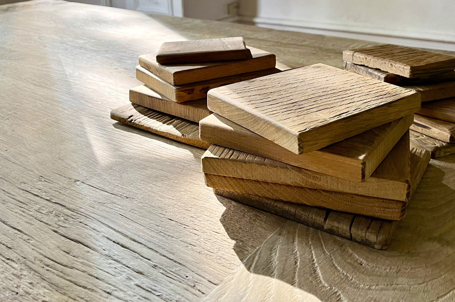 Ce bois a traversé les siècles sous forme de poutres, de planchers ou de charpentes. Il est ensuite séché naturellement pendant plusieurs années, avant d’être retravaillé avec soin.